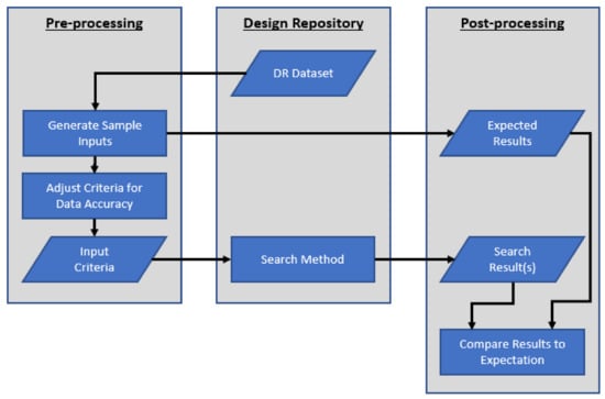 This paper provides a novel approach to assessing DR search functionality. The method may be applied to compare competing search algorithms within a single DR, compare search method effectiveness across multiple DR, or compare effectiveness of multiple search methods for subsets of designs within a single DR.