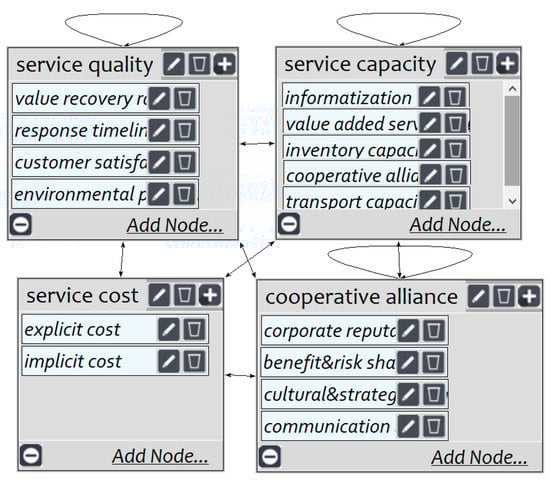 Scholars have conducted a lot of research on the evaluation or selection of 3PRLPs. The evaluation objects include electric power products [], household electrical appliances [], automobiles [,], mobile phones [,,,,,], medical appliance products [,], and electric vehicle power battery recycling []. Due to different evaluation objects, purposes, or priorities, the proposed evaluation criteria are different []. Table 1 shows four typical evaluation criteria. These criteria are all constructed by scholars based on the literature and reclassification. It can be seen that it is difficult to give a unified category of criteria and specific criteria, and that different enterprises need to screen and establish the corresponding criteria according to their own evaluation requirements.