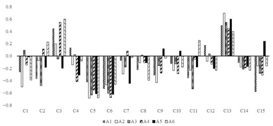 It is difficult for different enterprises to establish a consistent index system because of different objects and requirements for 3PRLP evaluation. In order to fully reflect the personalized requirements of an enterprise’s 3PRLP selection and to simplify the criteria, considering the advantages of rough set theory in conditional attribute reduction, we apply a rough set method to screen the criteria. The process depends on the individual experience and judgment of experts in the field. Supposing that an enterprise has established a preliminary evaluation criteria system with t criteria and the corresponding sub-criteria, the organizers consult h experts with high theoretical level and practical experience about 3PRLP, and each expert evaluates the importance of the t criteria and the corresponding sub-criteria according to Likert’s five-point scale. The values 1, 2, 3, 4, and 5 represent unimportant, general, important, very important and especially important, respectively. With each criterion as the decision attribute and the corresponding sub-criteria as the condition attributes, t decision tables can be obtained. Taking one decision table as an example, as shown in Table 5, the condition attributes C1, C2, …, Cs are the corresponding sub-criteria, the decision attribute D is the criterion, and xi(j) and di are, respectively, Likert values given by the ith expert on the importance of Cj and D relative to 3PRLP evaluation.
