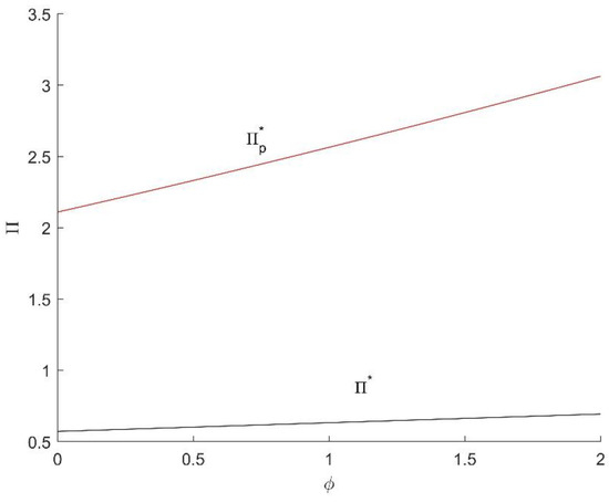 Corollary 2 shows that the improvement of interactivity can increase the revenue of the video platform. This is because the users’ interactivity increases their perceived utility. With the increase in , more users are willing to join the platform. It is helpful for the platform, and for the advertisers and users, to achieve a win-win situation. In addition, advertising nuisance negatively affects video platform profit . For users, excessive advertising nuisance makes them reluctant to pay higher fees to the video platform, which reduces both the number of and the revenue from users. For advertisers, the number of users is an important factor in determining their profits. So, as user demand declines, they too are reluctant to pay more to use the video platform. These factors reduce video platform revenue. Furthermore, the profit coefficient positively affects the profit of the video platform . The reason for this is that advertisers feel that it makes sense to place ads on the video platform as the profits from users increase. Therefore, more advertisers are willing to join the video platform, and they are also willing to pay higher sponsorship fees, which can in turn increase the video platform’s profits. Finally, the market size of the users and advertisers positively affects platform profits. The proof of Corollary 2 is in Appendix A.