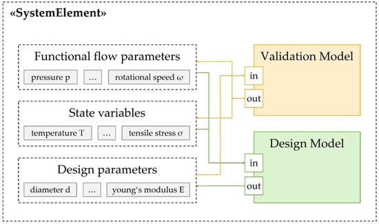 Thus, the parameters of the system element are meaningfully structured for validation and design. For the appropriate selection and coupling of the domain models, these still lack an unambiguous description of the parameter interfaces, which is proposed in the following section.