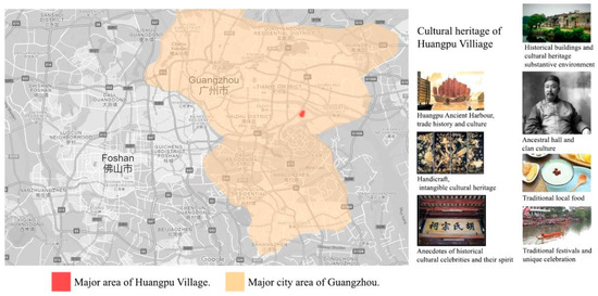 The Huangpu Village, Haizhu District, Guangzhou City, Guangdong Province, China is taken as the empirical case in this study (as shown in Figure 2). Huangpu Village is a natural and traditional Chinese village. The Huangpu Ancient Harbor in the village is a historical and cultural heritage in China. As a famous foreign trade port of “Canton System” in the Qing Dynasty, it is not only one of the birthplaces of China’s “Maritime Silk Road”, but also a parking place for China’s foreign exchange and trade; for example, it is a parking place at the beginning of Sino US trade. It has many unique tangible and intangible cultural heritages. On 26 August 2013, Huangpu Village was announced as the second batch of Chinese traditional villages by the Ministry of Housing and Urban-Rural Development. The village has high historical and cultural values. At the same time, the village is also in the urban area of Guangzhou. In the development strategy of Guangzhou, the Huangpu Village is a key project to be developed.