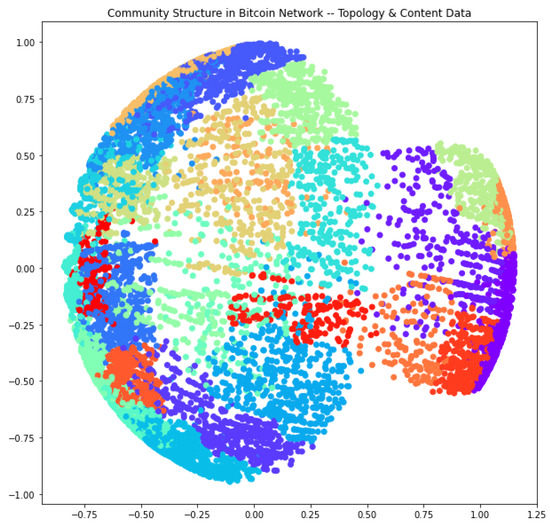 Top 10 Communities within the Bitcoin network. The color of the node indicates the node’s community. (Snapshot token on 14 May 2022).