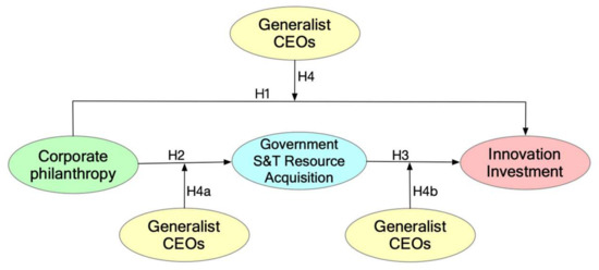 The generalist CEO enhances the positive effect of philanthropic donations on corporate innovation investment by increasing the effect of government S&T resource acquisition on corporate innovation investment.