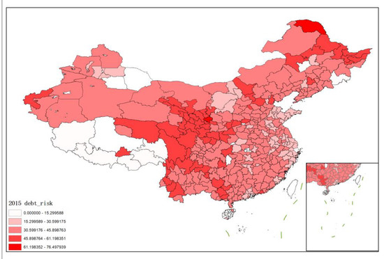 The hidden debt risks of local governments are presented using the map in Figure 1 using Arcmap software. We take the 2015 data as an example.