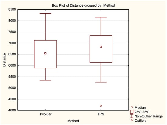 Figure 11. The mean for two-tier architetcture is 6560m and for TPS 6595 m.