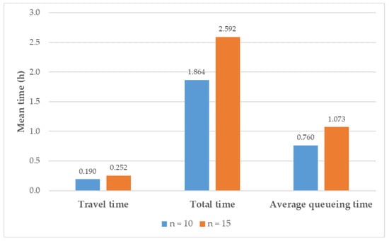 The simulation was run by 100 replications for 10 and 15 consignment cases, respectively.