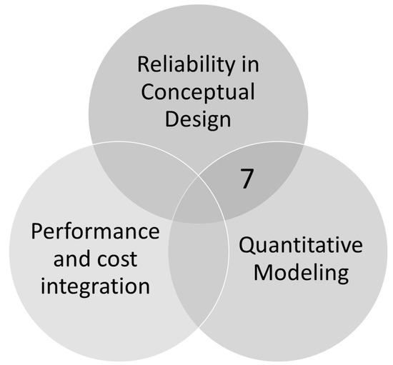 There are seven quantitative reliability papers. A significant literature gap, indicated by the intersection of the three circles in the Venn diagram shown in Figure 3, demonstrates a gap in quantitative early life cycle reliability model papers that incorporate reliability models in integrated performance, cost, and schedule models in the early life cycle design. This work aims to fill this gap.