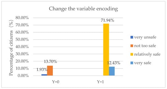 To check the robustness of the results, we made the independent variable social safety perception the dummy variable. Specifically, respondents were assigned 1 if they answered very safe or relatively safe and 0 if they answered very unsafe or not too safe. Figure 4 presents the details. After that, we used the same analytical methods, and the results showed that Internet use and Internet use frequency are negatively correlated with perception of social safety. In addition, we also applied an alternative analytical method by replacing the ordered probit model to the ordered logit model, for robustness check by changing the form of data distribution. The results also revealed that Internet use and Internet use frequency are correlated significantly and negatively with social safety perception. The ordered logit results are congruent with the baseline regression results. Table 3 presents the details.