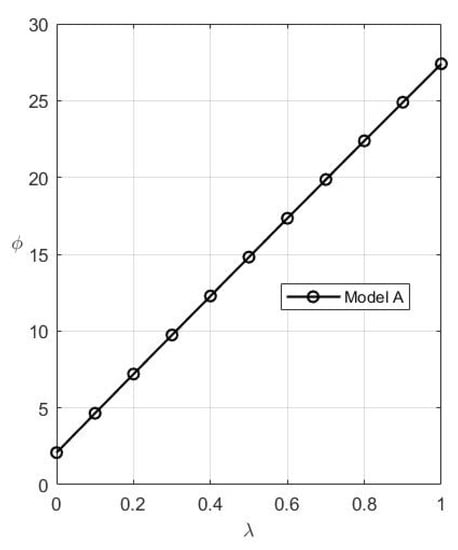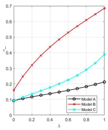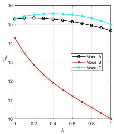 According to Equation (8), Equation (11), and , the reaction function of can be solved as