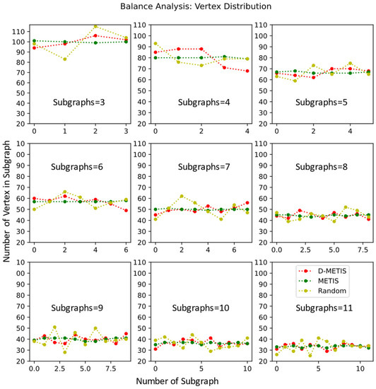 Graph partitioning involves evenly dividing a large graph into a series of subgraphs. This means subgraphs can be executed in parallel. If the current subgraph needs information from other subgraphs, partitioning must consider information transfer. The quality of the graph partition affects the storage cost of each machine and the communication cost among machines. According to the memory cost of partition, it can be divided into offline and streaming partition algorithms. For large-scale graph data, streaming partition is particularly important when the memory of a single machine cannot meet the requirements of the partition algorithm [18]. The partition method of graph data can be divided into vertex partitioning or edge-cut partitioning. For graph data with power law distribution, some vertexes may have many edges; if we run the vertex partitioning, many edges will be missing, and the edge load will be uneven, but edge partition can deal with this kind of problem [19]. The two goals of graph partition are load balancing (reducing storage costs) and minimizing cuts (reducing communication costs). At the same time, the two goals of optimization are balanced graph partitioning.