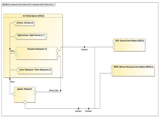 Internal block definition diagram (IBD) of UAV.