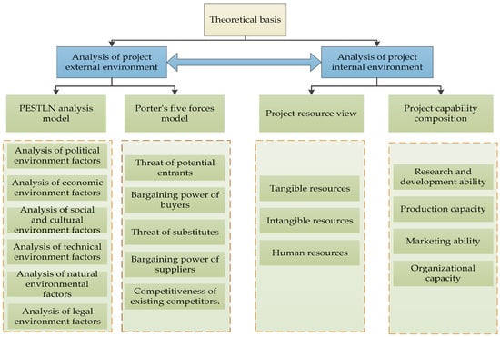The environment is divided into the external environment and internal environment. In the analysis of the external environment, the common theories include the PESTEL analysis model and Porter’s five forces model. In the analysis of the internal environment, this study focuses on the theory of resource view and the theory of capability composition. In this study, relevant theories of internal and external environment are applied to project evaluation. Through the analysis of theoretical elements to determine the evaluation of the project index system.