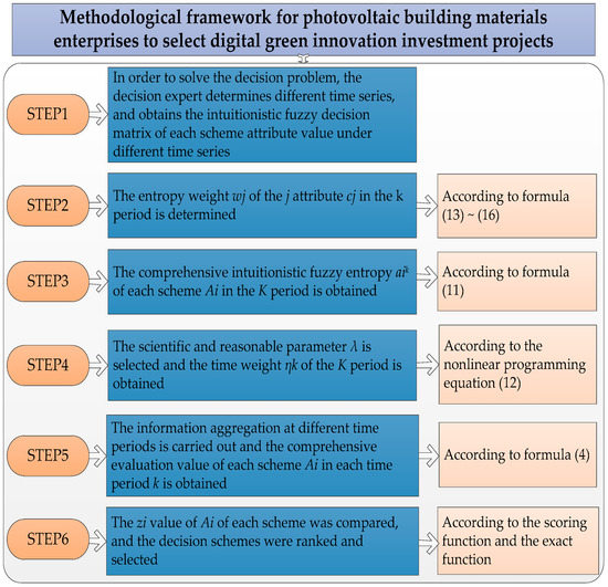 Methodology framework for photovoltaic building materials enterprises to select digital green innovation investment projects.
