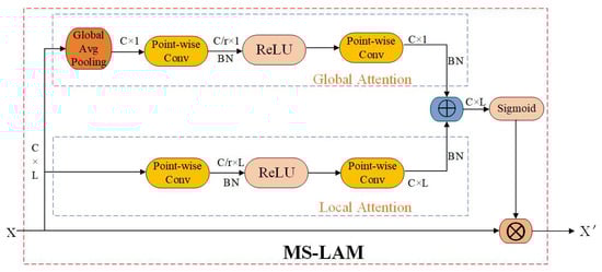 where denotes the attentional weights generated by MS-LAM. ⊕ denotes the broadcasting addition and ⊗ denotes element-wise multiplication.