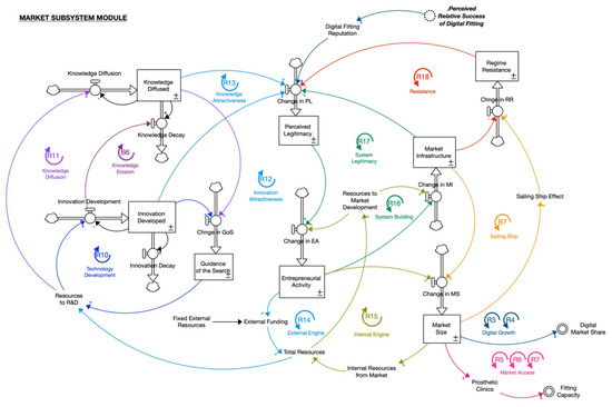 In the top-level health care system, we sought to explain the effects of digital prosthetics market growth on the prosthetics care sector. The complexity involved in market formation within the market subsystem is represented in Figure 2.