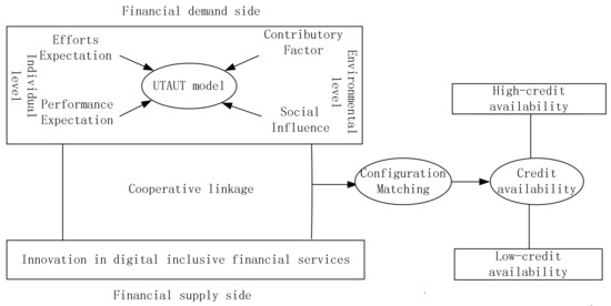 Performance expectation is defined in the UTAUT model as a user’s expectation that the use of a particular system or technology will improve his or her job performance, and users are more likely to adopt a technological system if it meets their needs and helps them perform their tasks better [31]. Applying performance expectations to the relationship between digital financial inclusion and credit availability implies that farmers demand easier application processes, faster approval times, and more flexible repayment schedules from digital finance as a way to improve their credit availability. Digital finance facilitates the market participation behavior of farmers, thereby alleviating their relative poverty [32]. Farmers who find that using digital financial inclusion applications for credit applications saves them time, reduces processing fees, and increases their chances of being approved will have higher performance expectations and thus be more willing to accept and use these applications [33]. Conversely, if they find that these applications do not meet their needs or improve their credit access efficiency, then they may choose not to use these applications in favor of more traditional credit routes. Thus, from the perspective of the UTAUT model, raising farmers’ performance expectations is key to driving their acceptance and use of digital financial inclusion applications. To achieve this, financial service providers need to ensure that their applications provide substantial benefits, such as faster service, lower fees, and higher credit approval rates, in order to meet farmers’ credit needs and increase their credit availability.