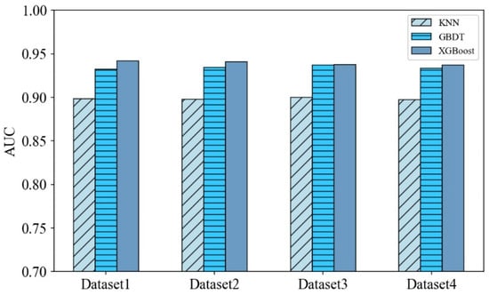 Figure 4 shows that, with the four datasets, the XGBoost model performed optimally in decision fusion of the classification results after inputting the three relational views into the RGCN model separately, further proving that the XGBoost model has a better performance in coping with decision fusion of multiple relationships.