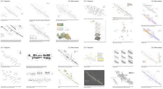 Time-based analysis serves a crucial role in the future-thinking approach by instilling a heightened awareness of transformations and challenging the notion of fixed projects inherent in traditional spatial design approaches. By adopting a time-based design perspective (for an example of an analytical process through a time-based design approach and future thinking developed by students on this course, see Figure 5), the groundwork is established for future-oriented thinking, enabling the identification of strategic and pivotal themes that shape the area’s transformations. This approach facilitates the discernment of both the most probable and the least significant changes that may occur. Most of the future-thinking practices serve to engage students in considerations of what the context and area they work on might be in the future, and what the agents of social transformation might be [39].