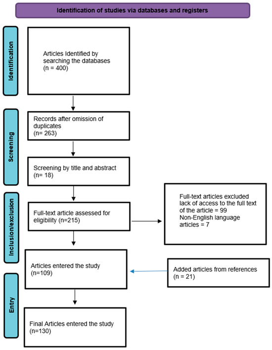 - Filters and limits: Publication date: 2019–2021 (during COVID-19); language: English; text: full text (by using the Boolean condition to filter links “FindIt@XYZ”); title: subject area, topic, category and important keywords; access: full accessible texts; language bias: non-English language.