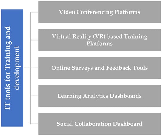 - Post COVID-19: Several authors like [44,134,135,136,137] studied the practice of incorporating more IT tools and ISs by the HR as a part of the working culture post-COVID-19. The conclusions from the studies revealed that employees’ performances increased when they used IT tools and ISs in remote work settings. Hence, the authors insisted that removing the usage of IT tools and ISs post COVID-19 will decrease the productivity and performance. Hence, it is recommended and argued among the researchers that implementing an IT tools-based working culture and the usage of ISs in regular working mode as well will motivate employees and result in organizational sustainability.