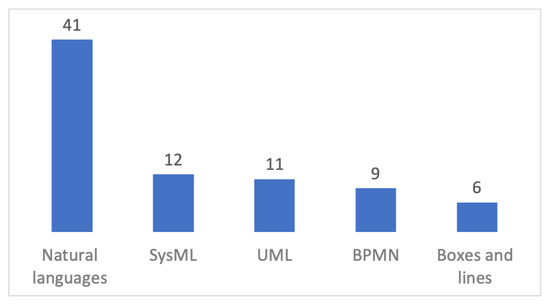 As Figure 3 shows, most of the languages (73%) support the informal specifications of requirements using natural languages (e.g., English sentences). A few of those tools (Dimensions RM, Auros IQ, Balsamiq Wireframes, Helix RM, and Jama Connect) supplement the natural languages with simple boxes-and-lines for the requirement specifications.