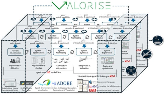 - Ciampa, P.D.; Nagel, B. Accelerating the Development of Complex Systems in Aeronautics via MBSE and MDAO: A Roadmap to Agility. In Proceedings of the AIAA Aviation 2021 Forum, Virtual Event, 2–6 August 2021. [Google Scholar]