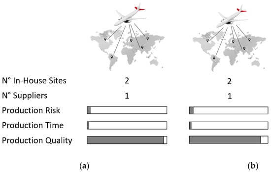The difference in the enterprise performing the Main Assembly leads to different production risks, time, and quality (and thus value). As shown in Figure 8, the production performance of these supply chains is almost the same, except for the quality. This is mainly related to the different competencies that the two in-house sites have in performing the Main Assembly. The difference in production risk and time is related to competencies but also to transportation contribution, with the two sites located in two different geographic locations. However, this difference and, in general, the difference in the production performance of Supply Chain 1 and 10 is very slight. This is also because the 19 solutions of the value-driven trade-spaces are all optimized solutions.