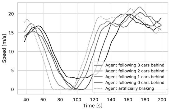 Microscopic traffic scenarios range from cooperative to competitive behavior [42,44]: recently, there have been attempts to develop a model exposing both phenomena within one framework [42]. Employing findings from psychology, one can achieve agent misbehavior similar to human actions in traffic situations [42,45]: however, these models are still rule-based, with the misbehavior being determined by the modeler a priori. Perhaps, as a result, current car-following models are not generalizable [43].