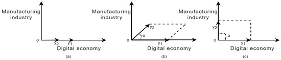 Three forms of value-added capability of coupling between the digital economy and the manufacturing industry((a) graph is , (b) graph is , (c) graph is ).