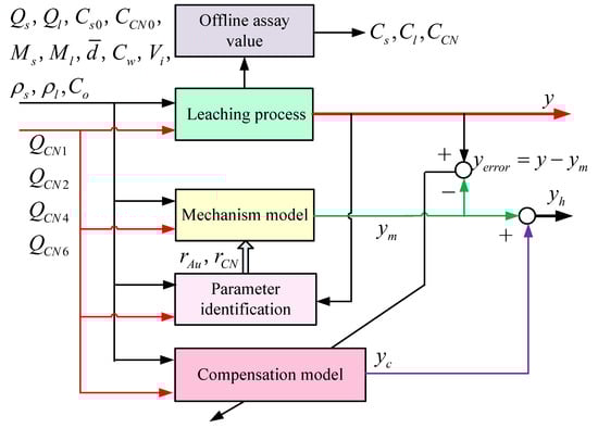 A hydrometallurgical leaching system is a typical complex system involving physical and chemical reactions, variables, and uncertainties []. Establishing the model of this complex system is helpful to analyze the relationship between the internal structure characteristics and the external variables []. With the decline in ore gold grade and increasingly strict environmental protection standards, hydrometallurgy plays an increasingly important role in the production of non-ferrous metals []. Hydrometallurgy technology can directly deal with low-grade and complex materials, improve the comprehensive utilization rate of resources, and realize cleaner production easily []. Hydrometallurgy is mainly based on the disciplines of metallurgical physics chemistry and reaction engineering []. Leaching is an important process in hydrometallurgy. Leaching is a complex process of chemical dissolution reaction between a leaching agent and specific components in solid materials []. The solution containing the extracted substance can be formed by leaching and can be preliminarily separated from other insoluble components. Leaching systems are mainly based on filtration leaching and agitation leaching. The leaching rate is the key index of any leaching system, and it is usually detected by offline assay []. The quality of the leaching solution directly determines the quality and benefit of subsequent production processes. Based on experimental tests, computer simulations, and mathematical derivation, the dynamic model of the leaching system can be established []. The process model can provide the necessary scientific basis for the engineering development and application of new hydrometallurgical processes.
