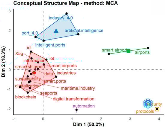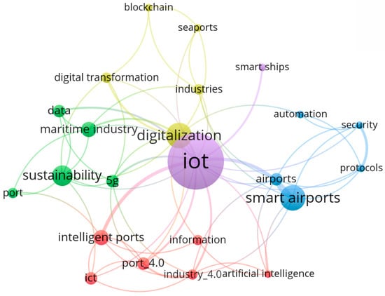 - Both the intellectual and conceptual structures of the knowledge base reveal the significance of the IoT, Industry 4.0, digitalization, and supply chains, and the relative dominance of smart seaport research in contrast to the smaller, but emerging, smart airport research. The analysis of the social structure showed the existence of various clusters of key publication sources, institutions, and regions/countries.