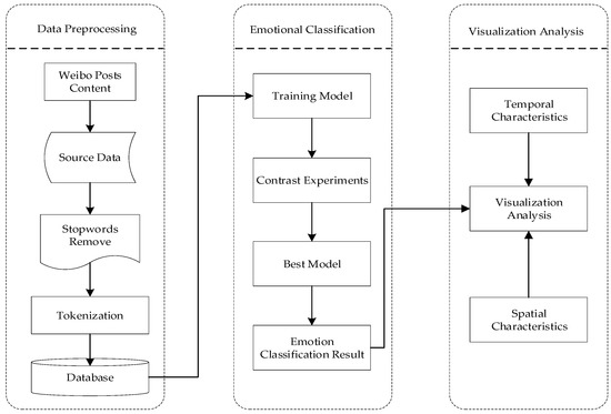 This paper is organized as follows: The first part introduces the research background and significance. The second part is a literature review according to the research content. The third part introduces the model and method used in this paper. The fourth part is experiment and analysis. Precision, recall rate, and F1-score are used to evaluate the performance of the model. Based on the sentiment analysis model, temporal and spatial characteristics are integrated for further analysis. The fifth part reviews the paper and puts forward the direction for future improvement.