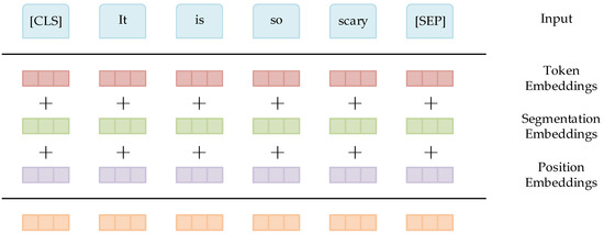 The input vector of BERT includes three parts: Token Embedding, Segmentation Embedding, and Position Embedding. The output of BERT is the last Transformer output, which is also the input of the downstream task. These three vectors realize the purpose of pre-training and predicting the next sentence, and the composition structure is shown in Figure 3. The pre-training process of BERT uses two methods, namely the masked language model and next sentence prediction, for capturing word and sentence level representations, respectively. When processing a word, it can use the information of the previous word and the following word simultaneously, which is different from the traditional language model. Moreover, BERT masks some words randomly and uses all unmasked words for prediction. In short, the BERT model can better solve the polysemy problem than the Word2Vec model. Compared with the Recurrent Neural Network [41], it is more efficient, and it can capture longer-distance dependencies and real bidirectional context information. If it passes the test, we can use this model to obtain semantic information about the text.
