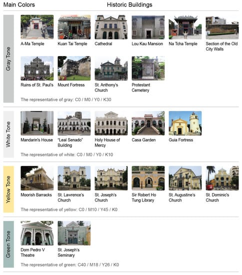 4.3. Environmental Color and Representation of the Historic Centre of Macau