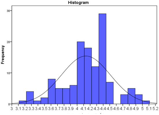 According to the data in the Table 3, the estimated value of the Kolmogorov–Smirnov test was 1.282, which is less than the tabular (Z) value of (1.96), and the significance value (Sig) was 0.068, which is higher than the value of (Sig). Acceptance of the null hypothesis and rejection of the alternative hypothesis at the (0.05) level of significance indicates that the data on the axis of making the appropriate investment decision are distributed approximately according to the normal distribution; the normal distribution curve for the data on the axis of making the appropriate investment decision is illustrated in Figure 4, which also shows the degree of consistency of the normal distribution curve.