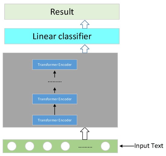 We input the data set into the trained BERT-Base-Chinese model. Through multiple Transformer layers, we calculated the similarity between a product feature word and other words in the same sentence and normalized the similarity results into weights through the softmax function. Then, we calculated the sentiment score of product features by integrating the value of the product feature word and the upper and lower words. Finally, we identified the sentiment orientation. Figure 2 shows the BERT model. The following describes the calculation of the Self-Attention mechanism.