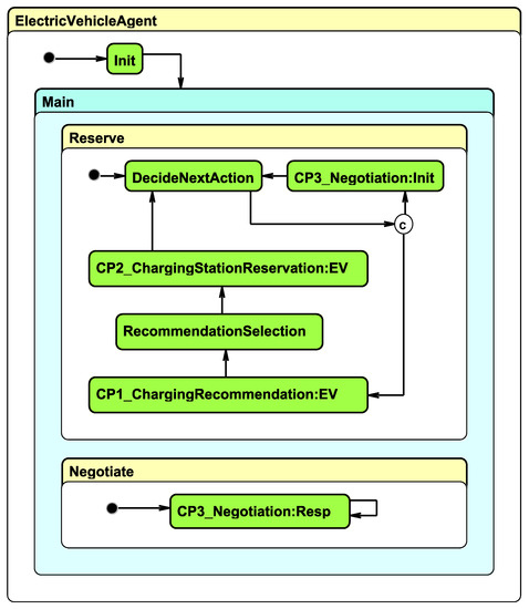 EVs may also communicate with a charging station to schedule a charging session or seek profit by participating in V2G and engage in negotiations with charging stations. Such an agent might also consist of submodules, such as components for driver preference elicitation that monitor the typical habits and behavior of the driver, and possibly even forecast future preferences, or interoperable user interfaces, attainable either via a mobile device or the dashboard of the vehicle, which can be utilized by humans to operate respective procedures and monitor their conduct, for example, payments and negotiations, or simply to browse and select recommendations.