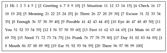 The dance manager searched words input by the word controller in the Dance-Choreo-DB and detected gestures based on the search result. Figure 30 shows the processes of the dance manager. The proposed system learned the level and preference of gesture by using the Bi-LSTM network. The word controller indicated necessary input words for dance sequence creation: [I You Day Greeting Eye Mouth EarMain I Prank You Need Enough Situation Check Greeting Hi].