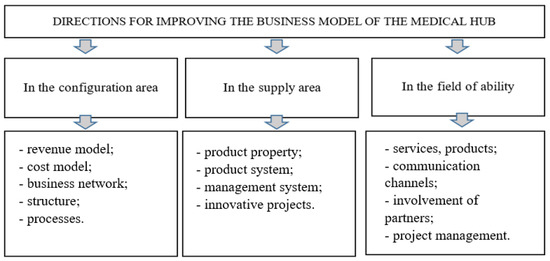 The improvement of the business model of the medical hub can be carried out in three different areas, presented in Figure 5.