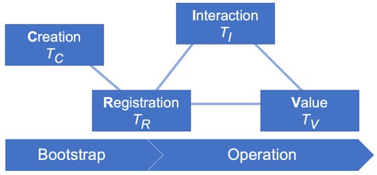where is equal to 0 after the bootstrap phase (). is given by the number of new actors in that month. links the total number of actors in the system using an interaction factor . relates to the expected number of interaction transactions of each actor. For example, if each actor is expected to have at least two in the time unit m (e.g., per month), the factor is set to . Lastly, links the total number of actors with factor , which represents the value transfer transactions of each actor. For instance, when actors are expected to have at least one every two months, the factor is set to . The user can estimate the values of and at an early stage of development. In a more advanced stage, the factors can be estimated from the current activity in the system.