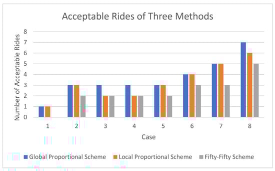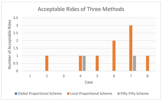 Based on Case 1 and Case 2, the number of acceptable rides under the Global Proportional Method is .