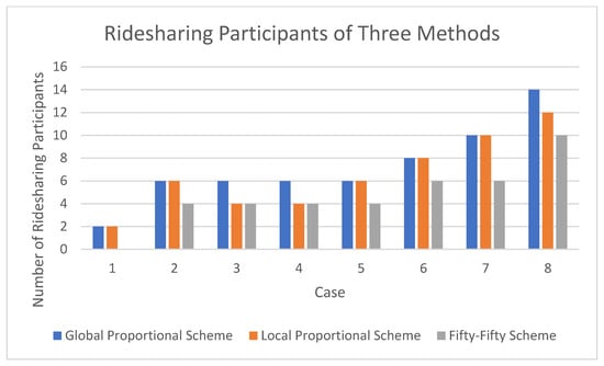 The number of ridesharing participants on the acceptable rides under the Global Proportional Method is .