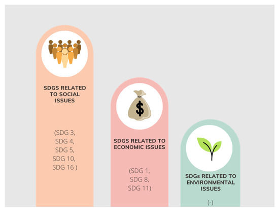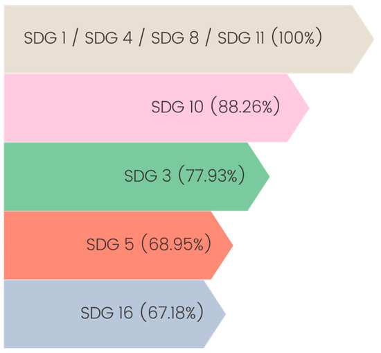 There is also research on the presence of themes related to SDG 10 (reducing inequalities), which includes in its second target to “empower and promote the social, economic and political inclusion of all, irrespective of age, sex, disability, race, ethnicity, origin, religion or economic or other status” [1] (p. 13).