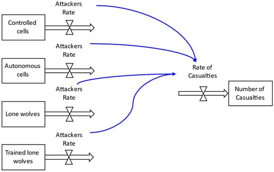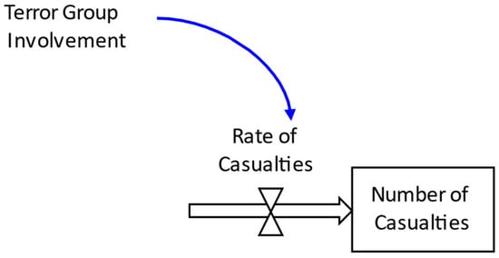 “Casualties” in the present paper are defined as a sum of both deaths and injuries, as both are a measure of the damage that a terror group is able to produce. We will use the System Dynamics computer modeling and simulation methodology [,] to construct a model based on our findings from a careful analysis of select studies regarding terror attacks and radicalization. We will use this model as a tool to simulate various scenarios and produce policy recommendations that are best able to reach our stated goal of reducing casualties. After our policy recommendations, we will move on to our conclusions, in which we will use all we have learned in order to argue the importance of utilizing System Dynamics in counter terrorism studies and policy modelling.