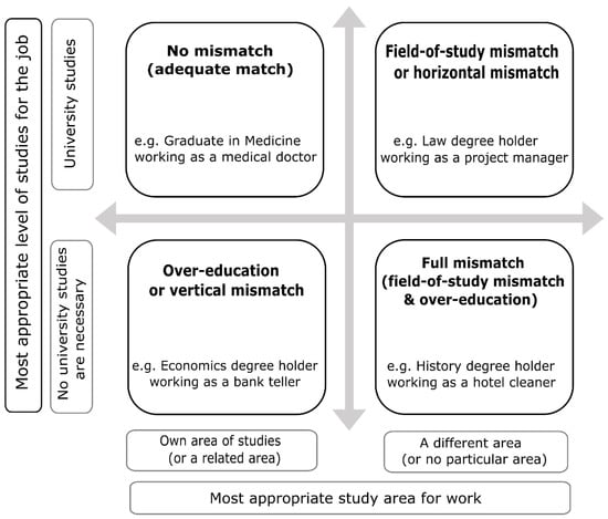 - Verhaest, D.; Sellami, S.; Van der Velden, R. Differences in horizontal and vertical mismatches across countries and fields of study. Int. Labour Rev. 2017, 156, 1–23. [Google Scholar] [CrossRef]