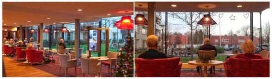 - Luyten, T.; Braun, S.; Jamin, G.; van Hooren, S.; de Witte, L. How Nursing Home Residents with Dementia Respond to the Interactive Art Installation ‘VENSTER’: A Pilot Study. Disabil. Rehabil. Assist. Technol. 2018, 13, 87–94. [Google Scholar] [CrossRef]
