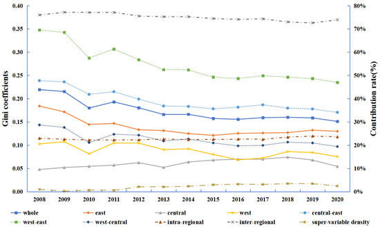To investigate the magnitude and determinants of regional differences in CSP and CSU in China, this study employs the Dagum Gini coefficient and decomposition approach for scientific measurement and decomposition. The measurement results are shown in Figure 1 and Figure 2.