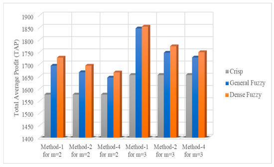 Impact of the learning index (N) on total average profit using different fuzzy methods.