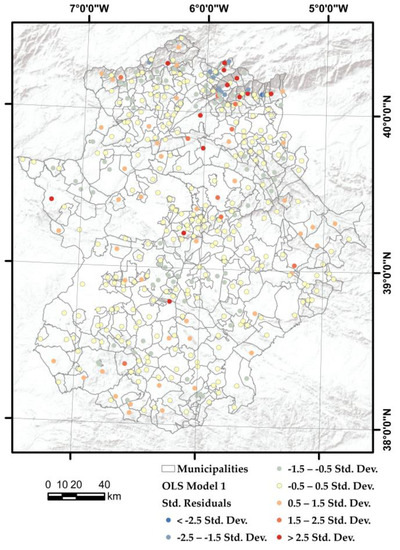 - Sánchez-Martín, J.-M.; Gurría-Gascón, J.-L.; Rengifo-Gallego, J.-I. The Distribution of Rural Accommodation in Extremadura, Spain-between the Randomness and the Suitability Achieved by Means of Regression Models (OLS vs. GWR). Sustainability 2020, 12, 4737. [Google Scholar] [CrossRef]